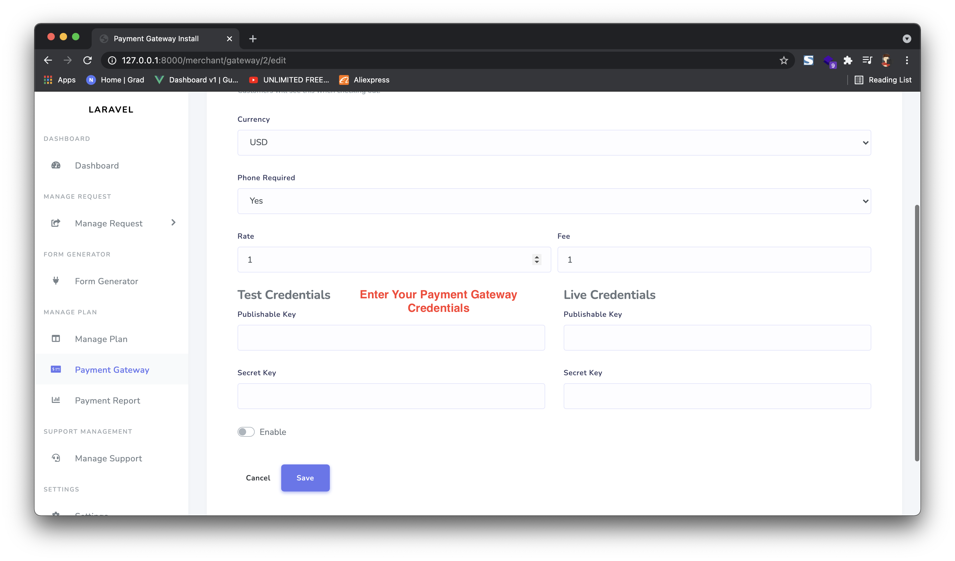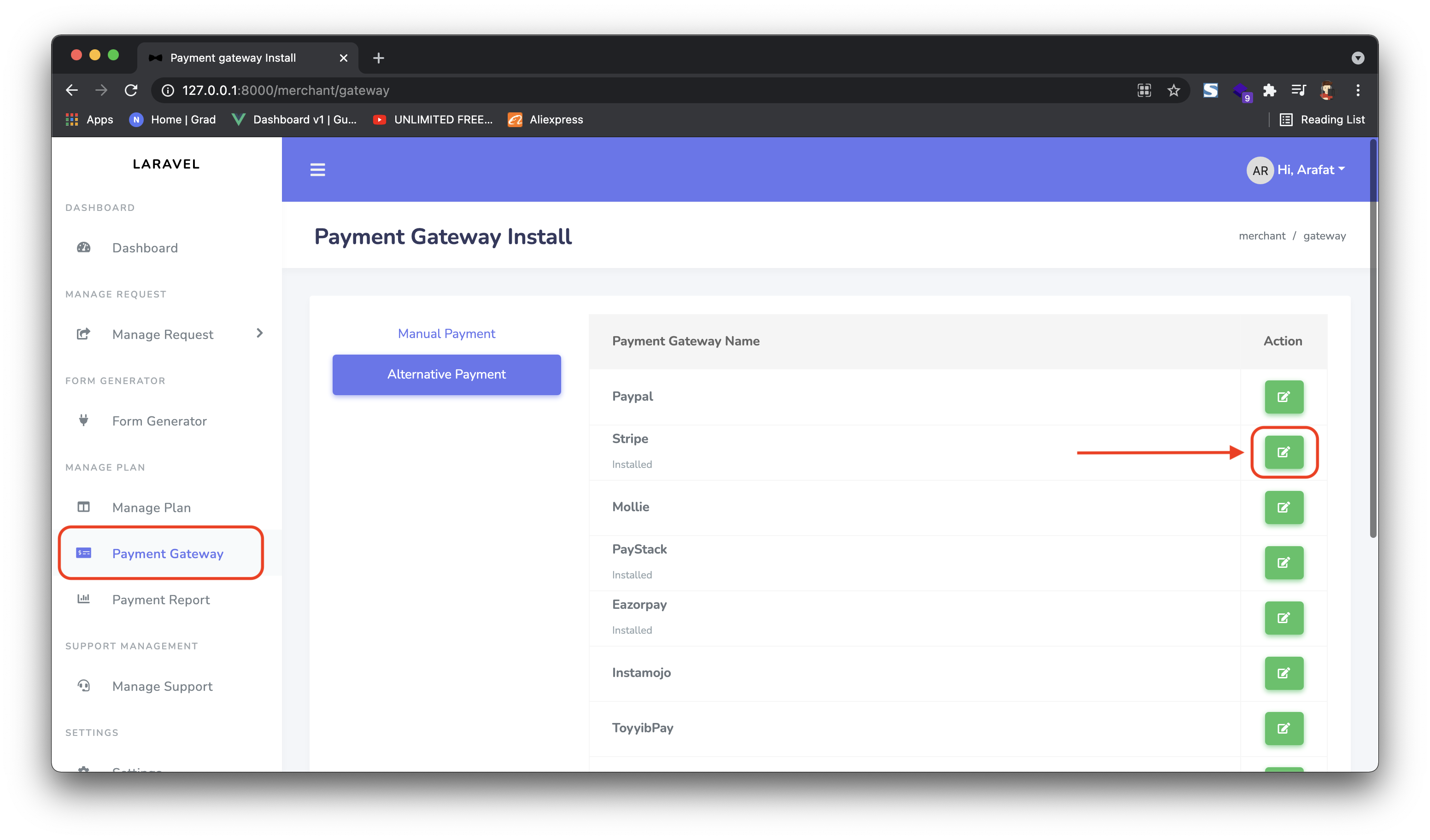 Paso 1: Elija la pasarela de pago para instalar con sus credenciales.