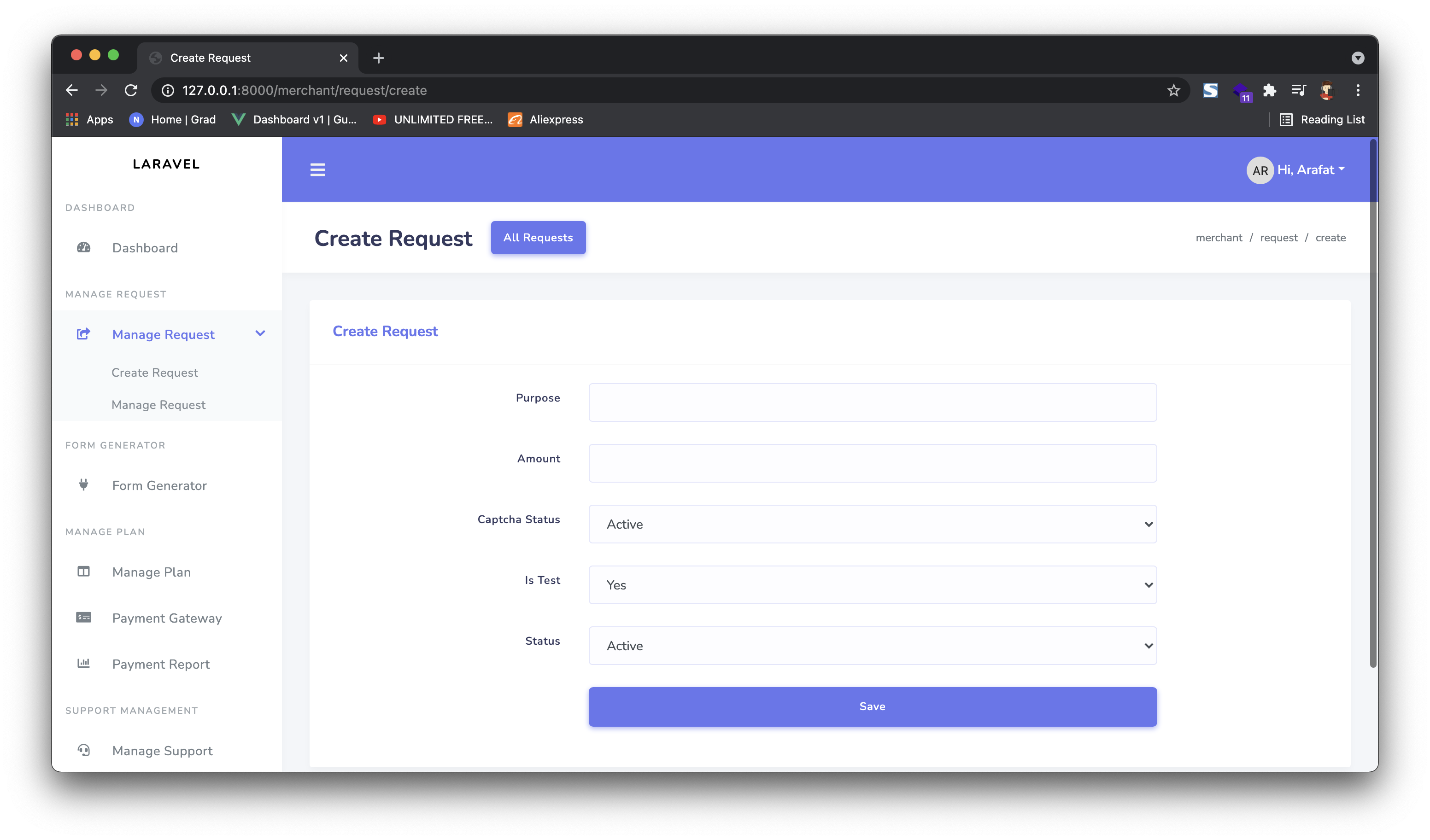 Para crear una nueva solicitud, seleccione crear solicitud y complete el formulario. Se generará una nueva URL.