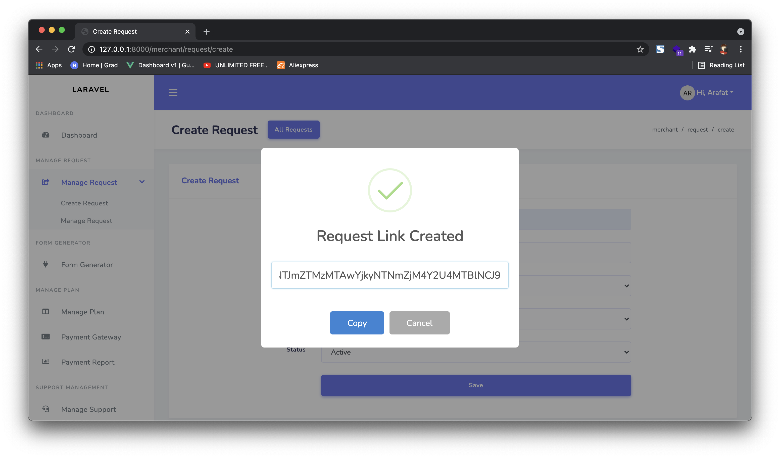 Ahora copie el enlace y envíelo a su cliente. El cliente verá las opciones de pasarela de pago.